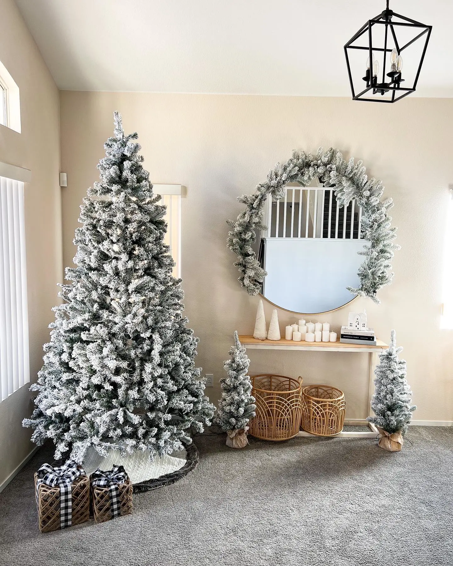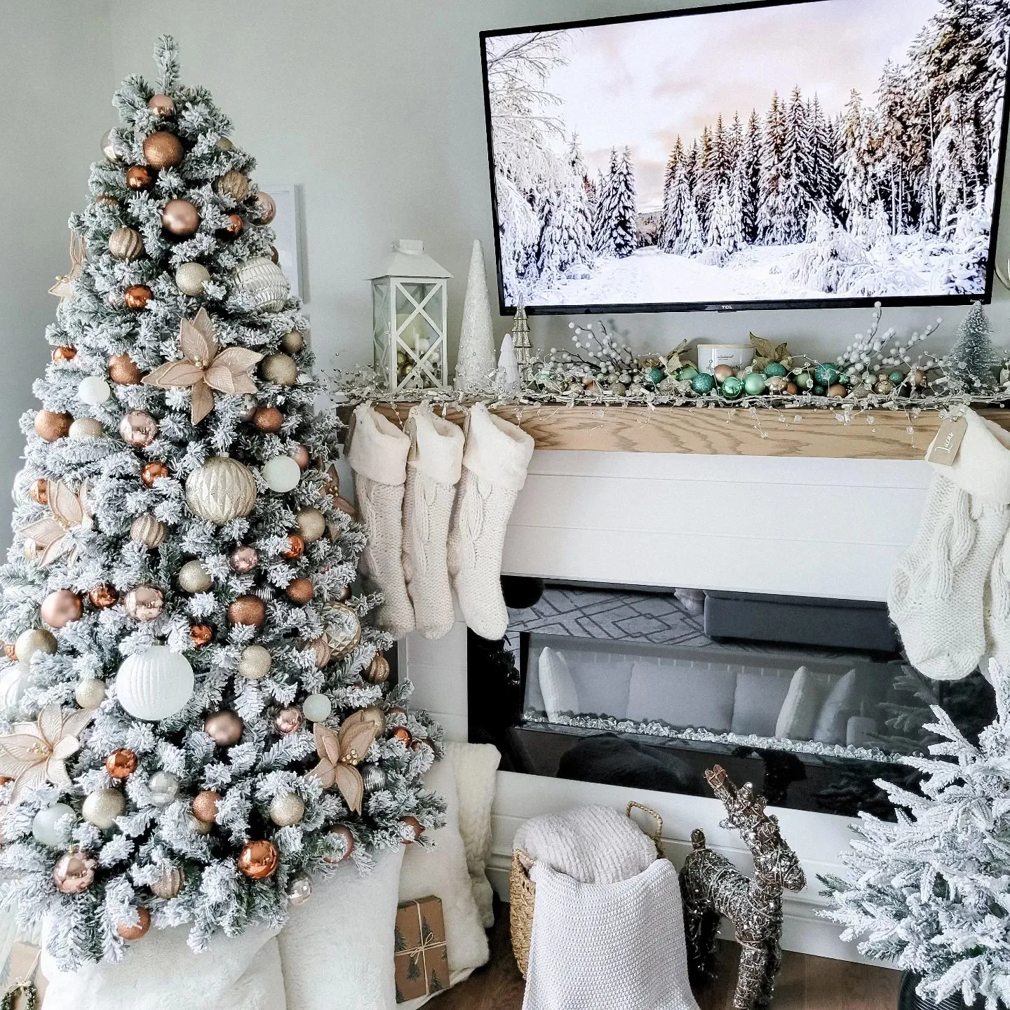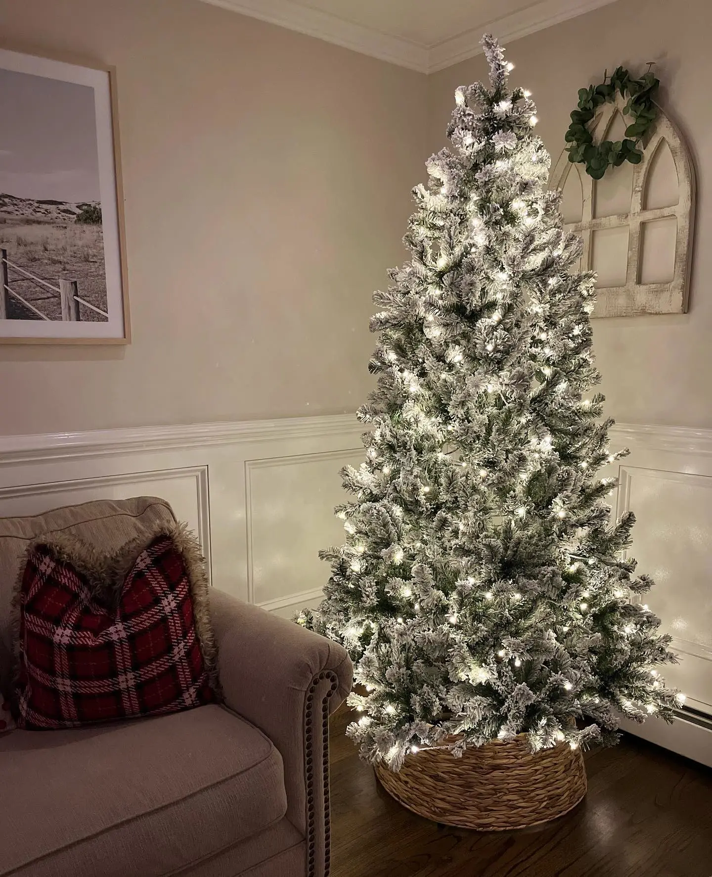 The Prince Flock Christmas tree makes a grand statement in your home and is the perfect tree to complete your Christmas display. It’s tall presence and streamlined construction create a regal and princely ambiance that endows your home with the majesty of the Christmas season. With heavily flocked tips, this frosted Christmas tree has the appearance of being covered with a gentle dusting of fresh powdered snow. The perfect complement to any holiday home, you will enjoy making this stunning Christmas tree your very own. The Prince Flock Christmas Tree is made from flame-retardant material and features a sturdy metal core to keep your tree standing tall and upright. The 10 foot Prince Flock pre-lit tree is expertly hand strung with 750 warm-white LED lights to help conceal the appearance of wires. With low voltage lights, you can feel safe to hang your ornaments without the tree running hot. Create a magical centerpiece inside your home when you choose the beautiful and stately Prince Flock Christmas Tree to enhance your Christmas decor.