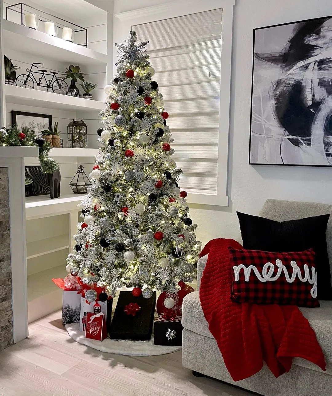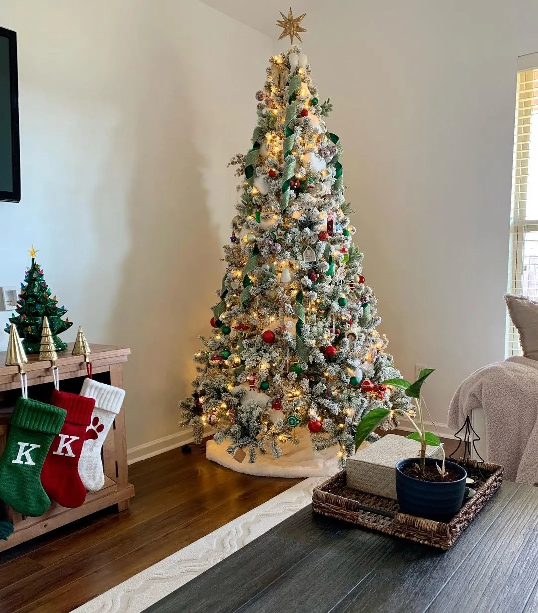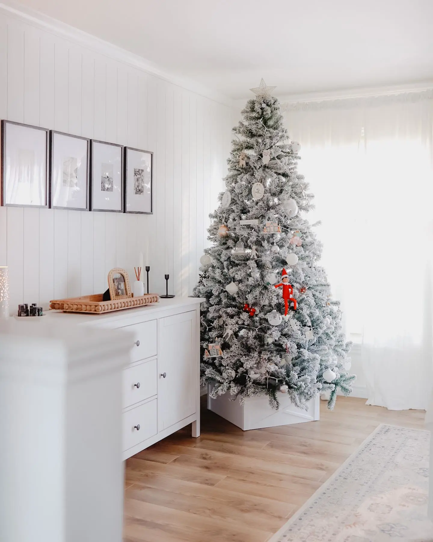 The Prince Flock Christmas tree makes a grand statement in your home and is the perfect tree to complete your Christmas display. It’s tall presence and streamlined construction create a regal and princely ambiance that endows your home with the majesty of the Christmas season. With heavily flocked tips, this frosted Christmas tree has the appearance of being covered with a gentle dusting of fresh powdered snow. The perfect complement to any holiday home, you will enjoy making this stunning Christmas tree your very own. The Prince Flock Christmas Tree is made from flame-retardant material and features a sturdy metal core to keep your tree standing tall and upright. The 10 foot Prince Flock pre-lit tree is expertly hand strung with 750 warm-white LED lights to help conceal the appearance of wires. With low voltage lights, you can feel safe to hang your ornaments without the tree running hot. Create a magical centerpiece inside your home when you choose the beautiful and stately Prince Flock Christmas Tree to enhance your Christmas decor.