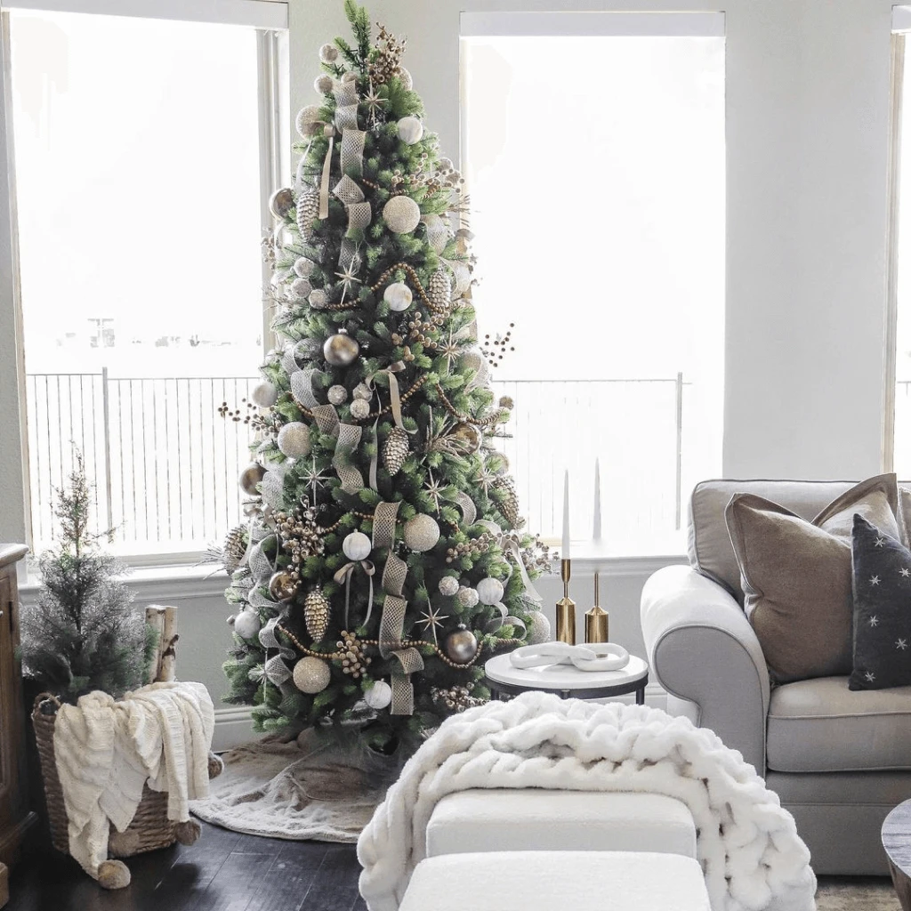 The Royal Fir Slim Christmas tree by King of Christmas is one of our premier, hallmark trees that is waiting to grace your home this Christmas. Known as one of the most high-end types of Christmas trees, the Royal Fir Slim is the epitome of grandeur and majestic splendor bringing a regal quality to your Christmas display. This signature tree features an artful blend of realistic tips (PE) and classic tips (PVC) which combine to create the ultimate in realism. With a strong metal core and included metal stand, you can hang as many ornaments as you dare with confidence. Your tree will stand strong and tall all season long while imbuing your home with the magic and elegance of one of the best Christmas trees in our collection.