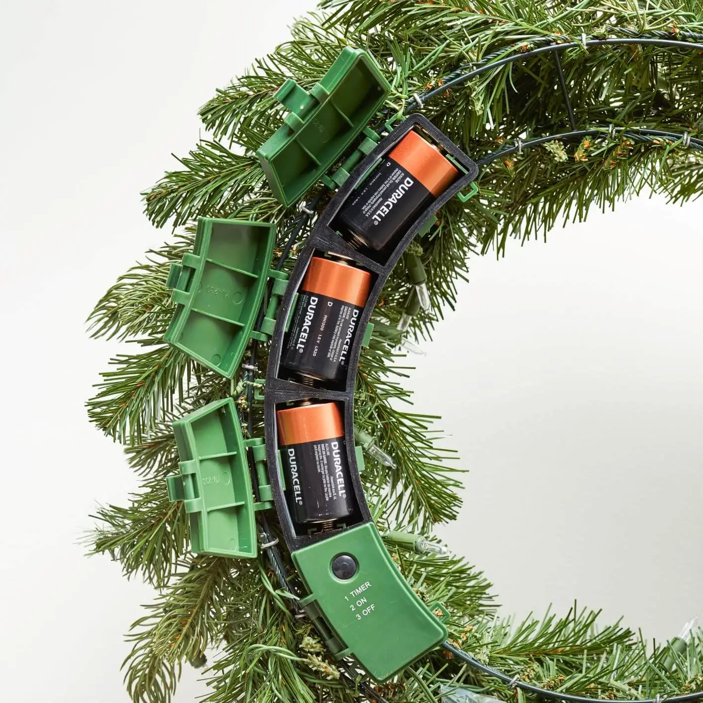 Extremely intricate with life-like foliage and detailed tips, the Royal Fir line is considered to be one of our premium selections. Assembled with the same materials and quality build as the Royal Fir tree. The Royal Fir Wreath is an excellent choice to compliment our Royal Fir tree. Appropriate for indoor and outdoor use, this wreath is perfect for hanging on doors, walls, or by the fireplace. Pre-strung with 70 UL warm white LED lights, the royal fir wreath is battery operated with a built-in automatic timer option - 6 hours on 18 hours off. Set a festive tone this holiday when welcoming your family and friends this season when you choose the royal fir wreath.