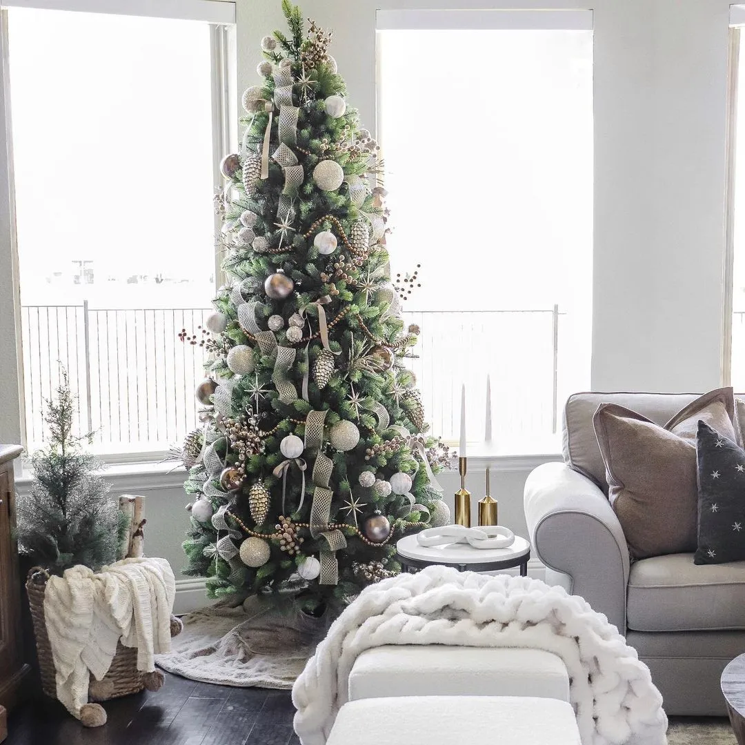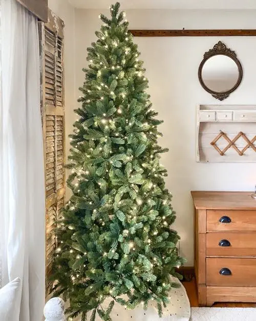 The Royal Fir Slim Christmas tree by King of Christmas is one of our premier, hallmark trees that is waiting to grace your home this Christmas. Known as one of the most high-end types of Christmas trees, the Royal Fir Slim is the epitome of grandeur and majestic splendor, bringing a regal quality to your Christmas display. This signature tree features a state of the art design with a blend of realistic tips (PE) and classic tips (PVC) resulting in a grand and beautiful realistic Christmas tree. This 6.5 foot Royal Fir Slim Christmas tree has a power-pole construction. A power-pole is where each tree section has built-in wiring that effortlessly connects the lighting strands as you set up your tree. You'll experience a seamless set-up to light your tree up without having to connect any wires. All of our pre-lit Christmas trees are skillfully hand-strung to camouflage the appearance of wires.