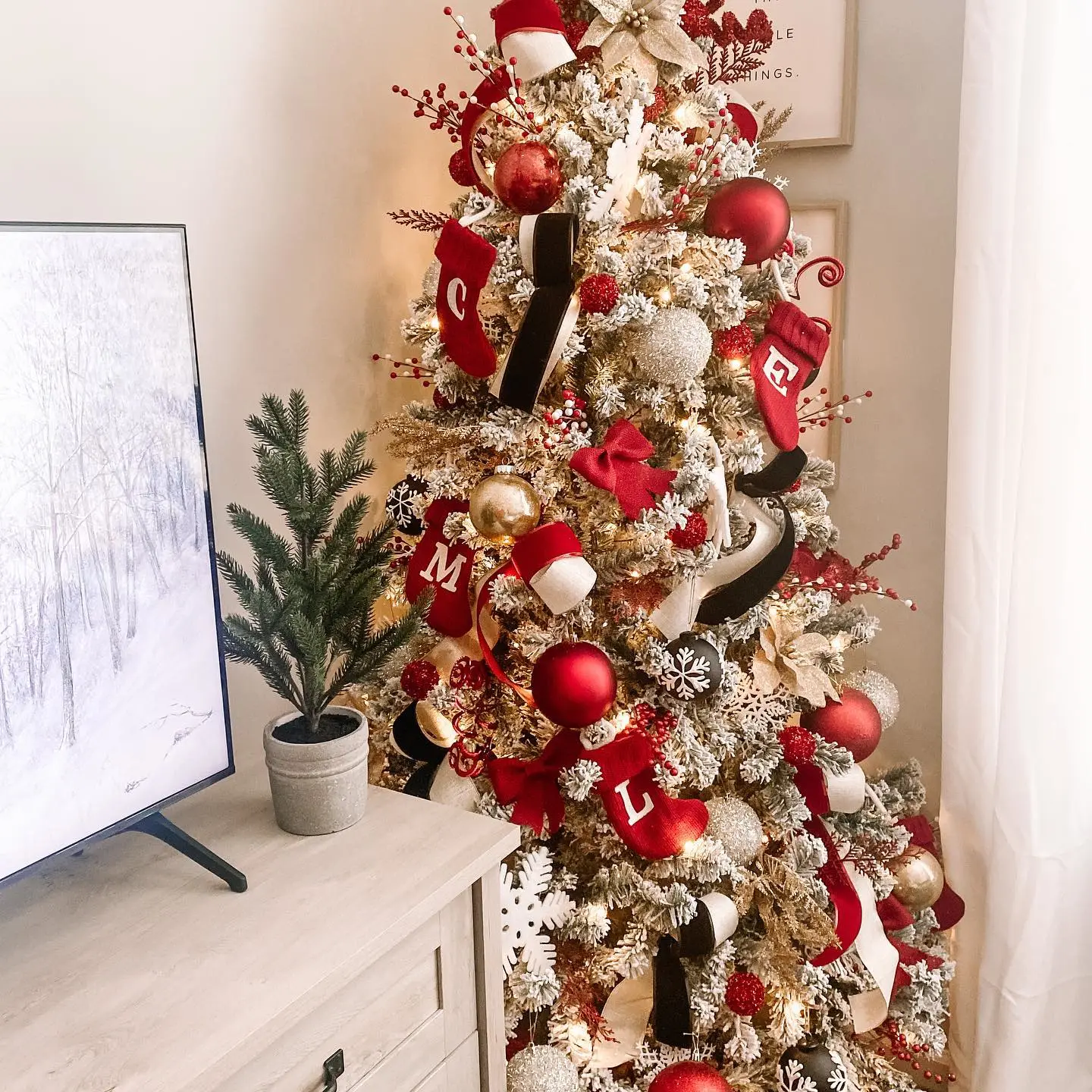 The Prince Flock Christmas tree makes a grand statement in your home and is the perfect tree to complete your Christmas display. It’s tall presence and streamlined construction create a regal and princely ambiance that endows your home with the majesty of the Christmas season. With heavily flocked tips, this frosted Christmas tree has the appearance of being covered with a gentle dusting of fresh powdered snow. The perfect complement to any holiday home, you will enjoy making this stunning Christmas tree your very own. The Prince Flock Christmas Tree is made from flame-retardant material and features a sturdy metal core to keep your tree standing tall and upright. Create a magical centerpiece inside your home when you choose the beautiful and stately Prince Flock Christmas Tree to enrich your Christmas decor.