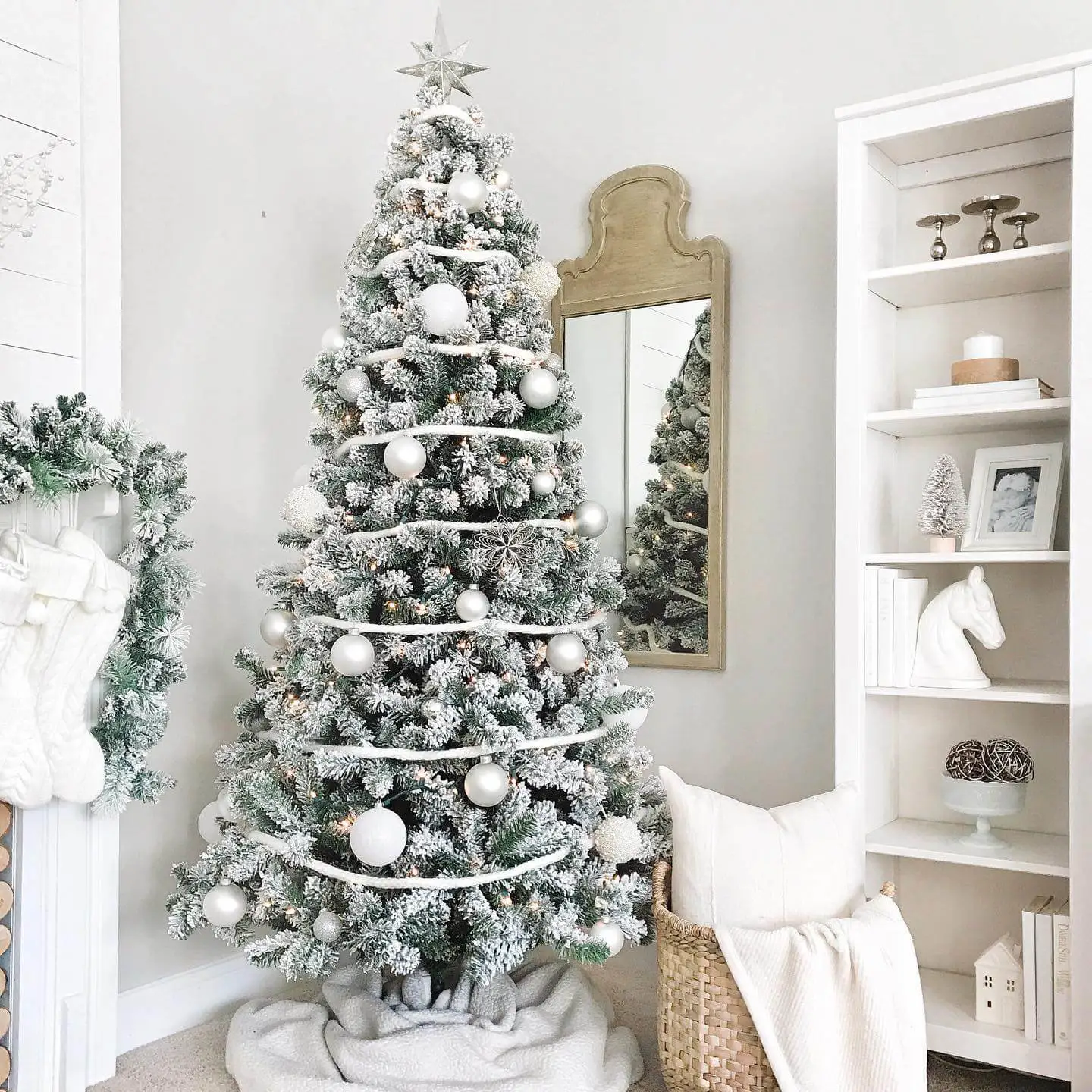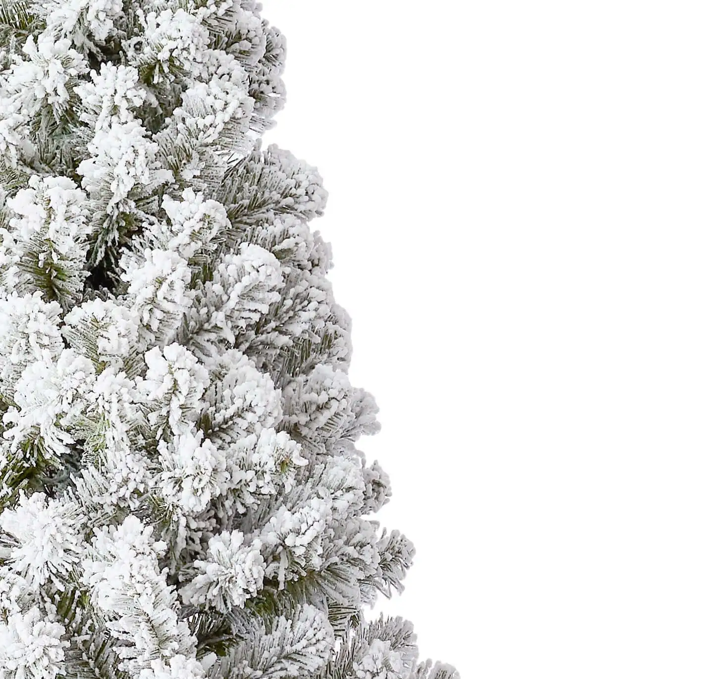 The Prince Flock Christmas tree makes a grand statement in your home and is the perfect tree to complete your Christmas display. It’s tall presence and streamlined construction create a regal and princely ambiance that endows your home with the majesty of the Christmas season. With heavily flocked tips, this frosted Christmas tree has the appearance of being covered with a gentle dusting of fresh powdered snow. The perfect complement to any holiday home, you will enjoy making this stunning Christmas tree your very own. The Prince Flock Christmas Tree is made from flame-retardant material and features a sturdy metal core to keep your tree standing tall and upright. Create a magical centerpiece inside your home when you choose the beautiful and stately Prince Flock Christmas Tree to enrich your Christmas decor.