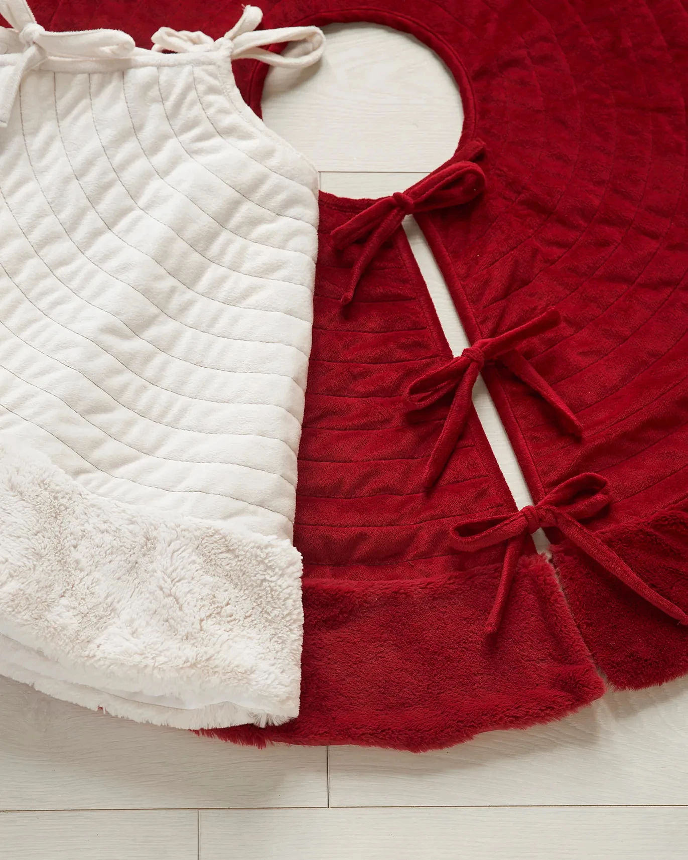 Add understated elegance to your Christmas tree with a plush tree skirt. Featuring a channel stitch quilting pattern and concentric circular design, this accent brings a simple yet sophisticated look to your decorating.