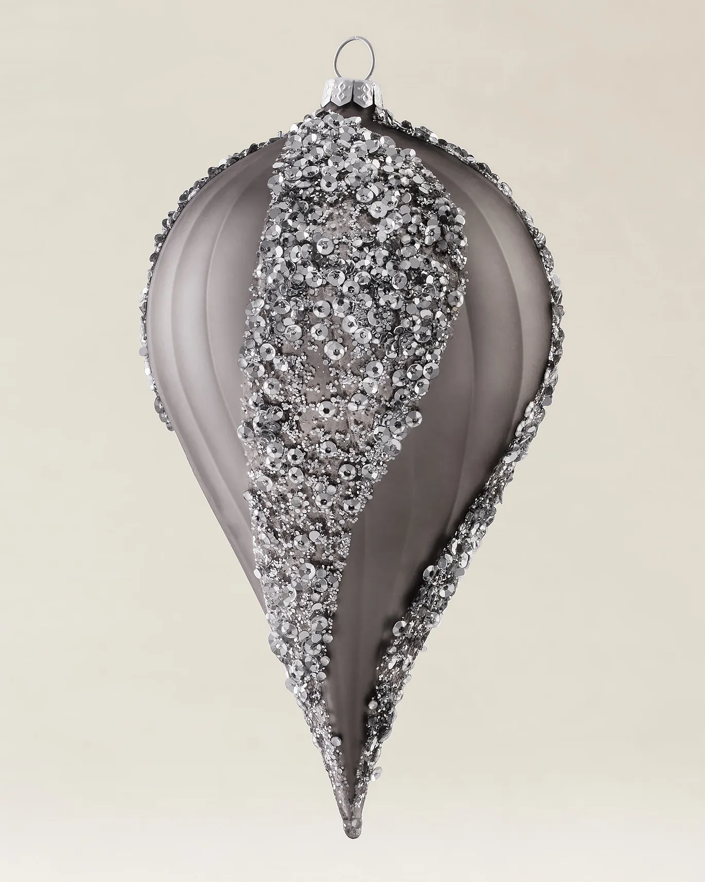 - Features an assortment of teardrops, balls, and finials embellished with crystals, beading, and glitter accents
