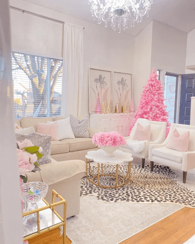 Duchess Pink Flock Artificial Christmas Tree with 600 Warm White LED Lights