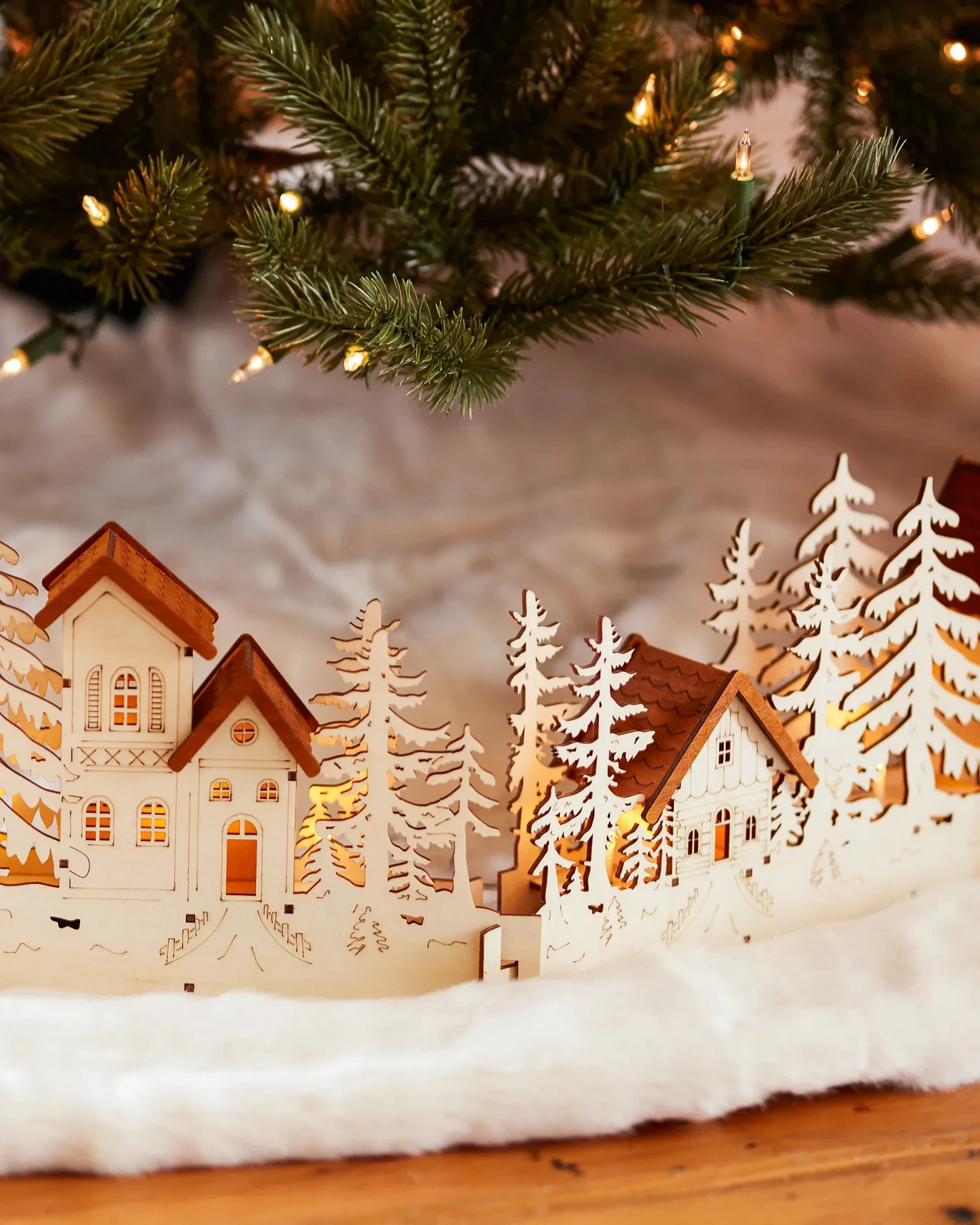 This handcrafted tree collar is a charming alternative to traditional tree skirts. Attach the six pre-lit pieces together to surround your tree with an inviting glow for your Christmas gift-giving traditions.